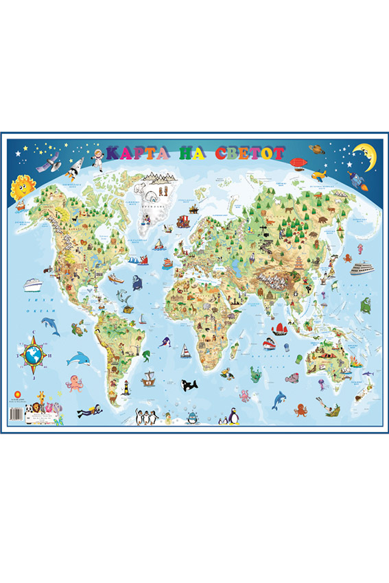 На картата е претставено специфичното животинско царство во светот, од едната страна, а од задната страна е претставена политичката карта на светот.